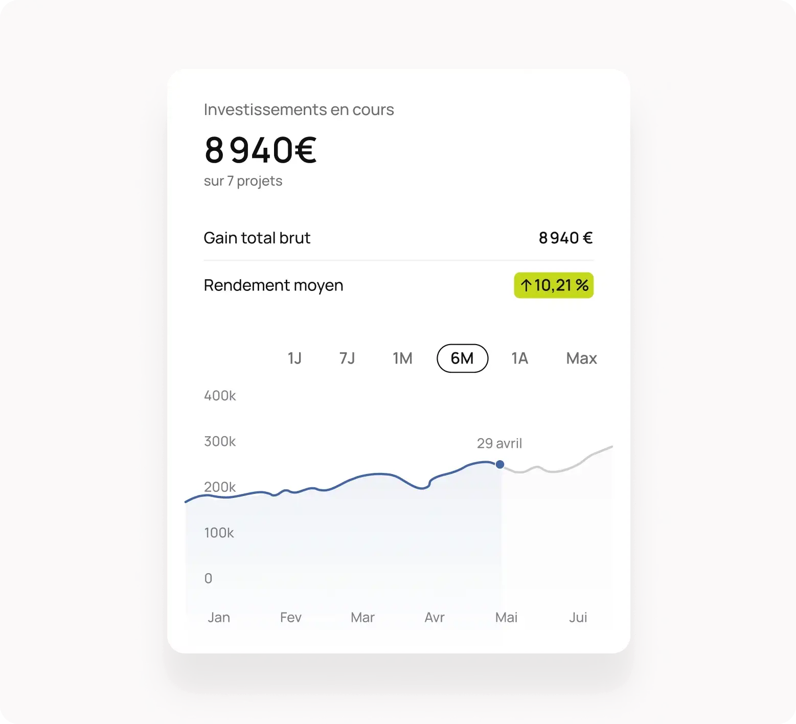 Les performances passées ne préjugent pas des performances futures. Tout investissement comporte des risques, notamment de perte en capital. Les rendements présentés sont des projections et ne constituent pas une garantie. Avant d'investir, veuillez prendre connaissance des risques détaillés dans la documentation réglementaire disponible sur notre site.